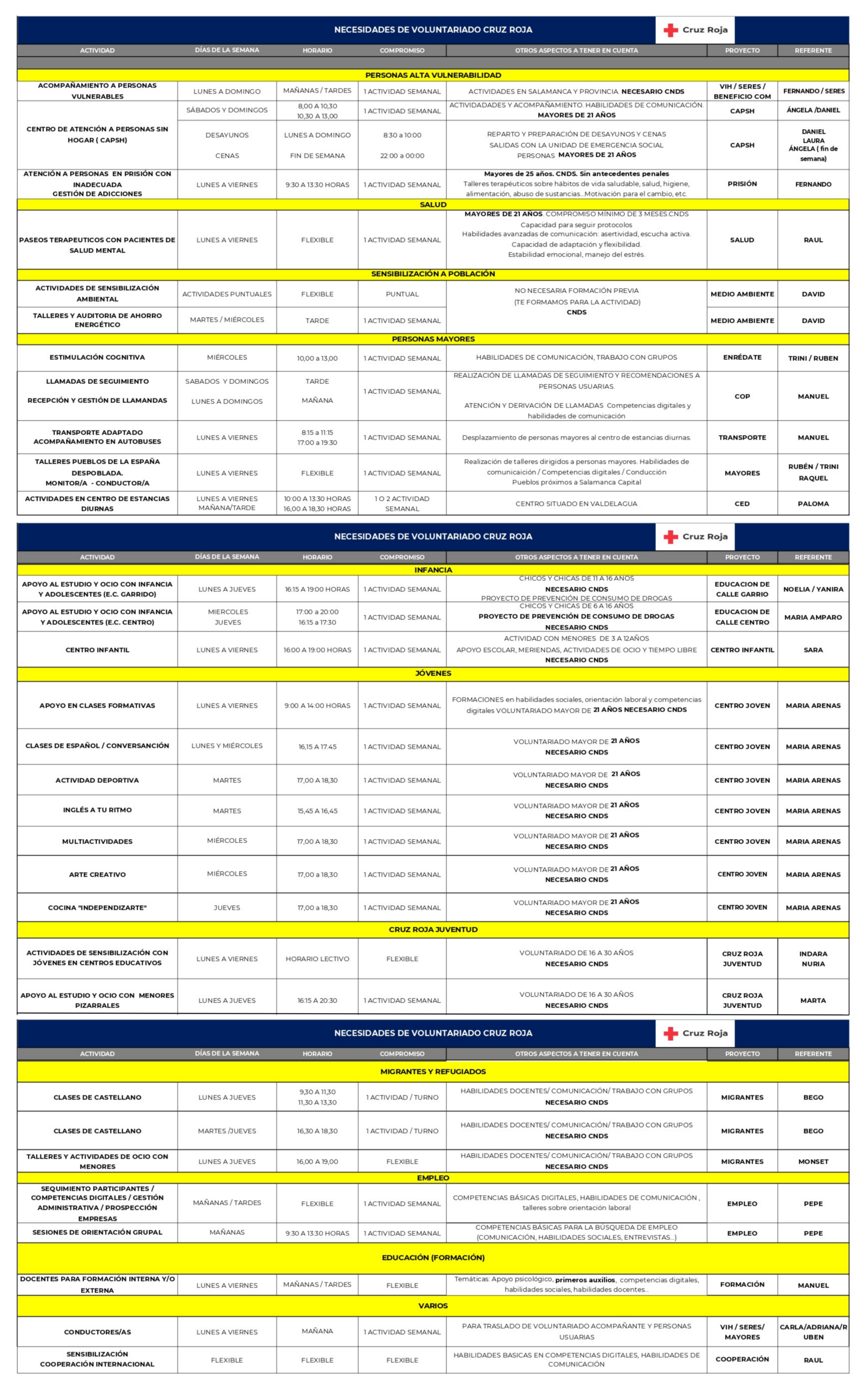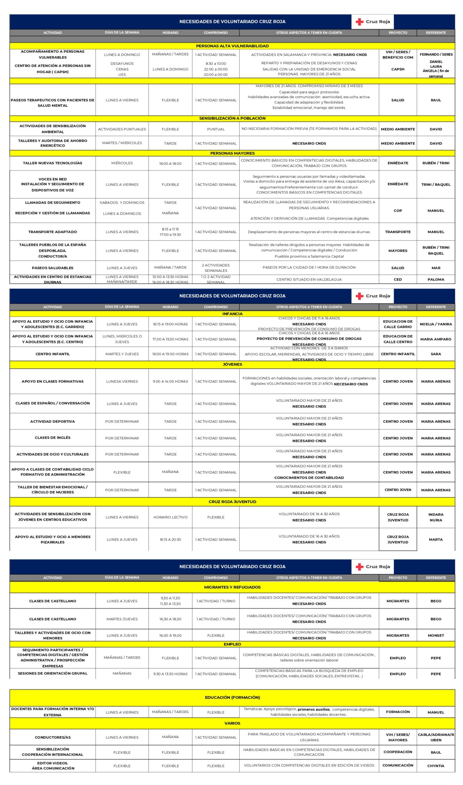 Se trata de diferentes actividades de varios ámbitos de intervención dentro de la propia entidad: *Personas alta vulnerabilidad *Sensibilización a la población *Migrantes y refugiados *Personas mayores *Juventud *Empleo *Formación *Varios