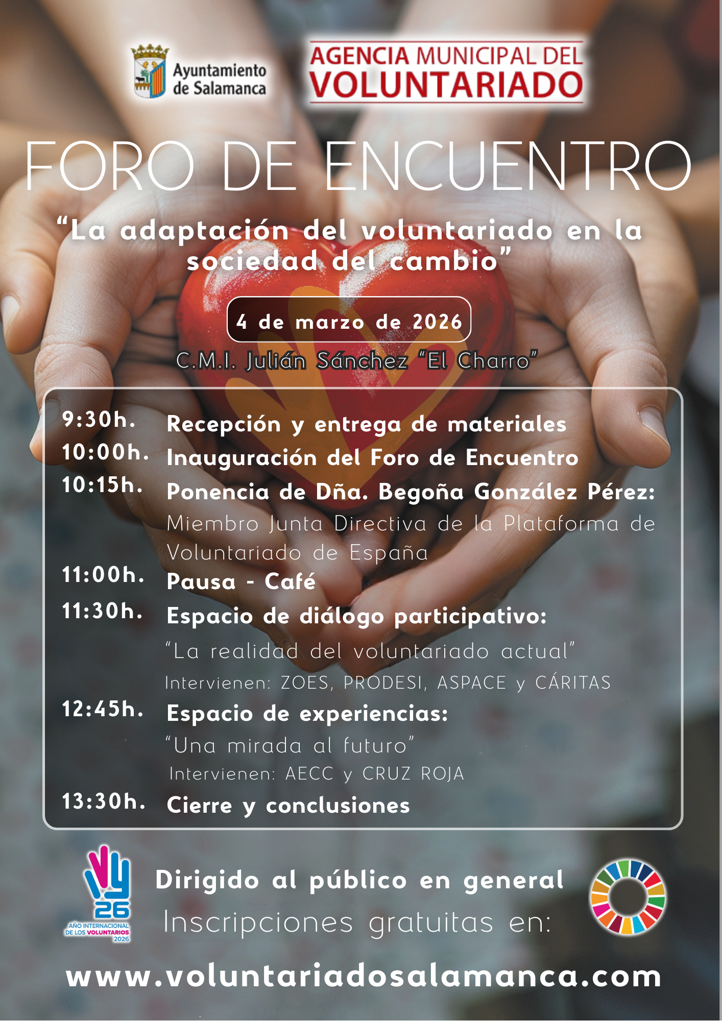 Este espacio surge con la finalidad de propiciar una reflexión compartida en torno a los principales desafíos, dificultades y oportunidades que afronta el voluntariado en la actualidad, en un contexto caracterizado por profundos cambios sociales, culturales y estructurales que inciden directamente en las formas de participación y compromiso ciudadano.