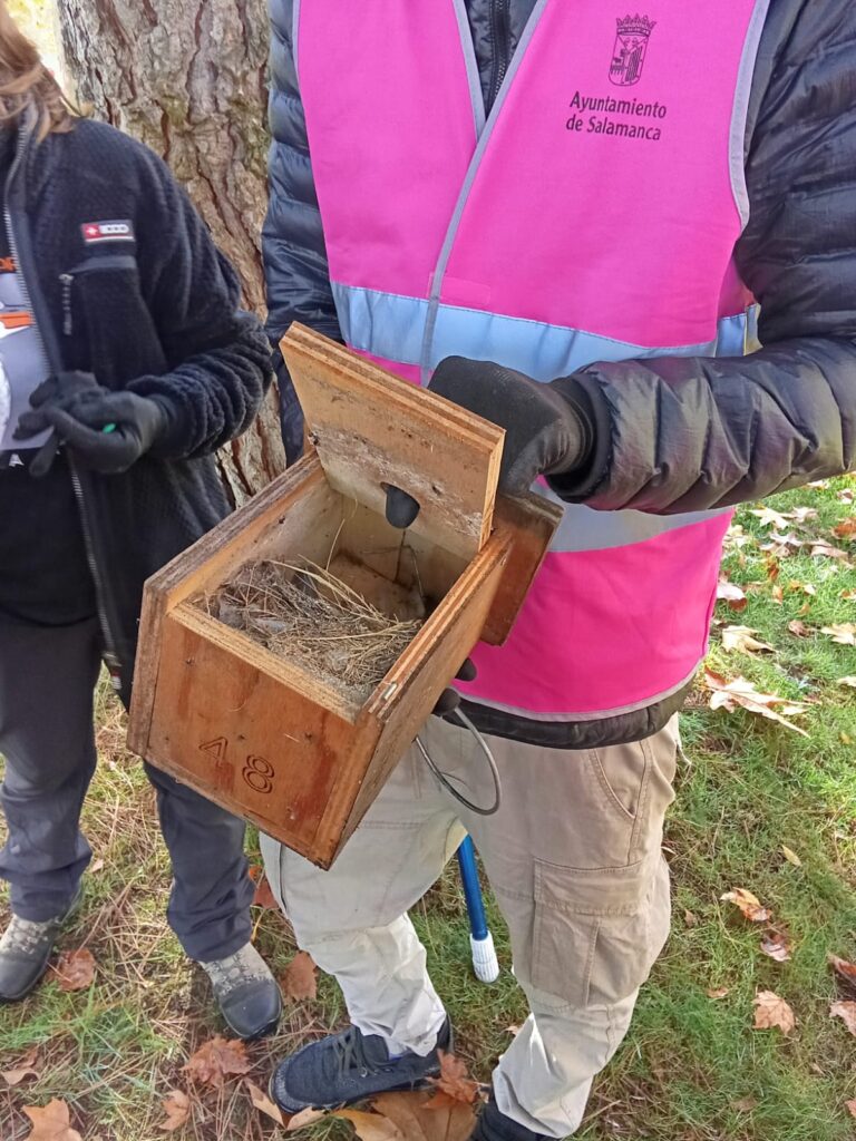 Voluntarias y voluntarios del Programa de Voluntariado Municipal «VoluntaS», revisaron y acondicionaron las cajas nido existentes en diferentes ubicaciones del Parque Miguel Delibes, para fomentar nuevas anidaciones en estos recursos, así como ‘arreglar’ aquellas que hubiesen sufrido daños por el propio paso del tiempo. También se elaboraron ‘comederos’ de semillas para facilitar a determinadas aves, la obtención de alimento que en determinadas épocas del año se reduce considerablemente debido a la disminución de insectos, etc.